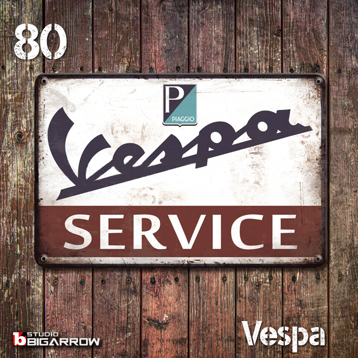 - 80 ブリキ看板 20×30㎝ VESPA ベスパ PIAGGIO ガレージ メタルプレート アメリカンインテリア USフェンス 世田谷ベース