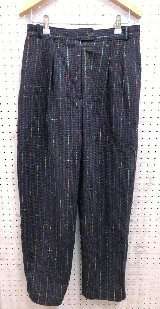 > DESIGN STUDIO チェック ツイード アルバート社製ジップ タック テーパード オールド レトロ 古着 パンツ スラックス レディース 10 紺