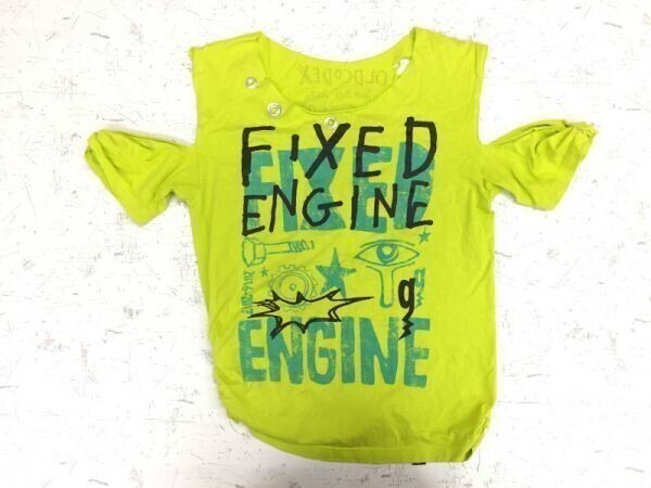 > リメイク品! OLDCODEX オルドコデックス Fixed Engine ライブ ツアー クラッシュ加工 オープンショルダートップス 半袖Tシャツ レディース