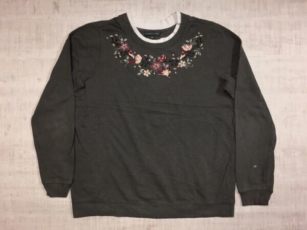 - クラシックエディションズ CLASSIC EDITIONS 二重襟 小鳥 花 刺繍 ファンシー オールド レトロ スウェット トレーナー レディース M グレー