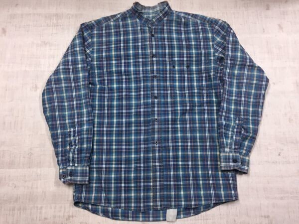 - Melka SPORTS アメカジ レトロ オールド古着 襟カットオフ ノーカラー 長袖チェックシャツ メンズ 青