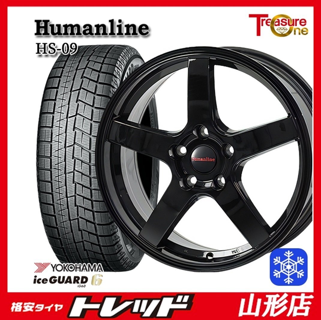 > 山形店 新品 冬タイヤホイールセット Humanline HS-09 17インチ7.0j 5H114.3 +38 BK ヨコハマ アイスガード6 225/60R17 2024年製 デリカ