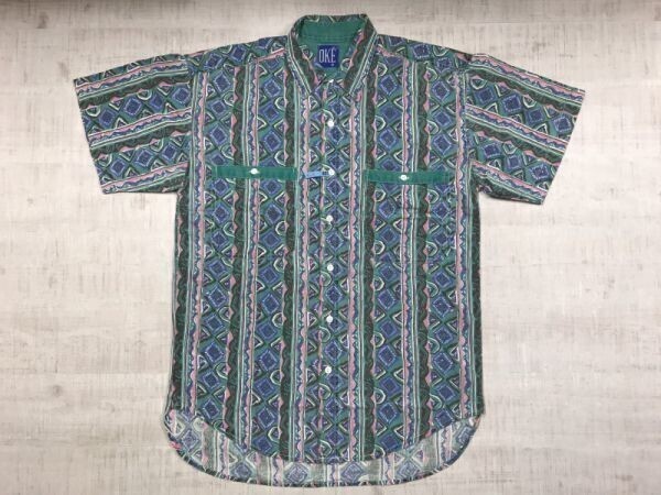 - OKE 90s 総柄 アート オールド レトロ アメカジ ストリート 古着 半袖シャツ メンズ S 緑