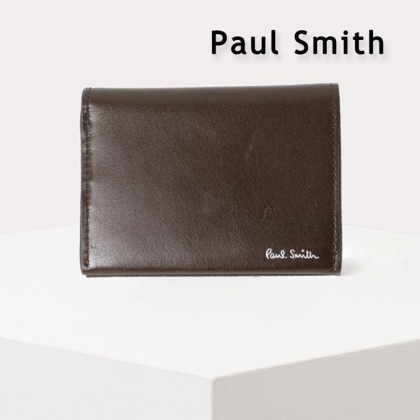 > 322 新品 Paul Smith ポールスミス フォールデッドエッジ 名刺入れ カードケース 牛革 正規品 BPS682 ブラウン本革