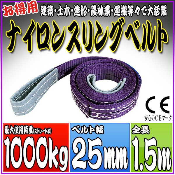 > スリングベルト 1.5m 幅25mm 使用荷重1000kg 1t 1.0t 吊りベルト ベルトスリング [ナイロンスリング 吊上げ ロープ 牽引 運搬]