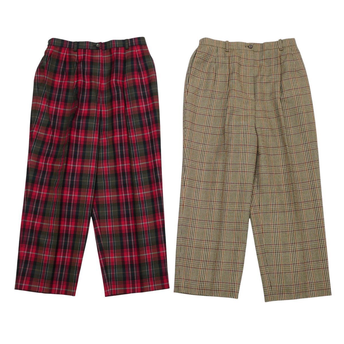 - GS3579=2点セット*バーバリー/BURBERRYS*ヴィンテージ*チェック柄*タックパンツ*ウールパンツ*size15/13*レッド×グリーン/ブラウン系