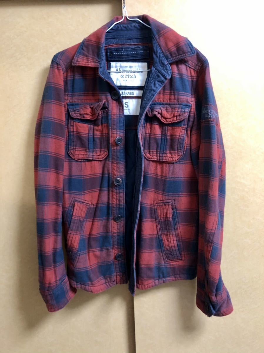 > 正規店購入 Abercrombie&Fitch アバクロ ジャケット ネルシャツ 厚手長袖シャツ レッド・ネイビー系 Sサイズ