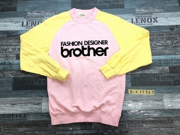 - Tan Luis レディース brotherプリント バイカラー トレーナー ピンク黄色