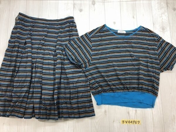 - LINEAR 株式会社ワールド レディース ボーダー 半袖フレアスカート・カットソー 上下セットアップ 上Ⅱ 下12 黒青黄土色
