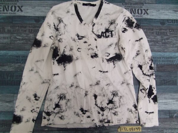 > AZUL by moussy アズールバイマウジー メンズ Vネック 柄入り カットソー 小さいサイズ XS 白黒