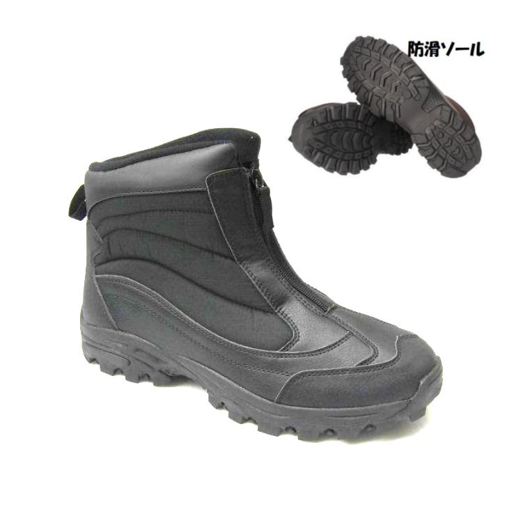 - スポッと履けるハンズフリー 防水 25.5 TRYGEAR TRG003 黒 防寒 防滑 軽量 幅広 紳士 メンズ スノー シューズ ダウンブーツ ショートブーツ
