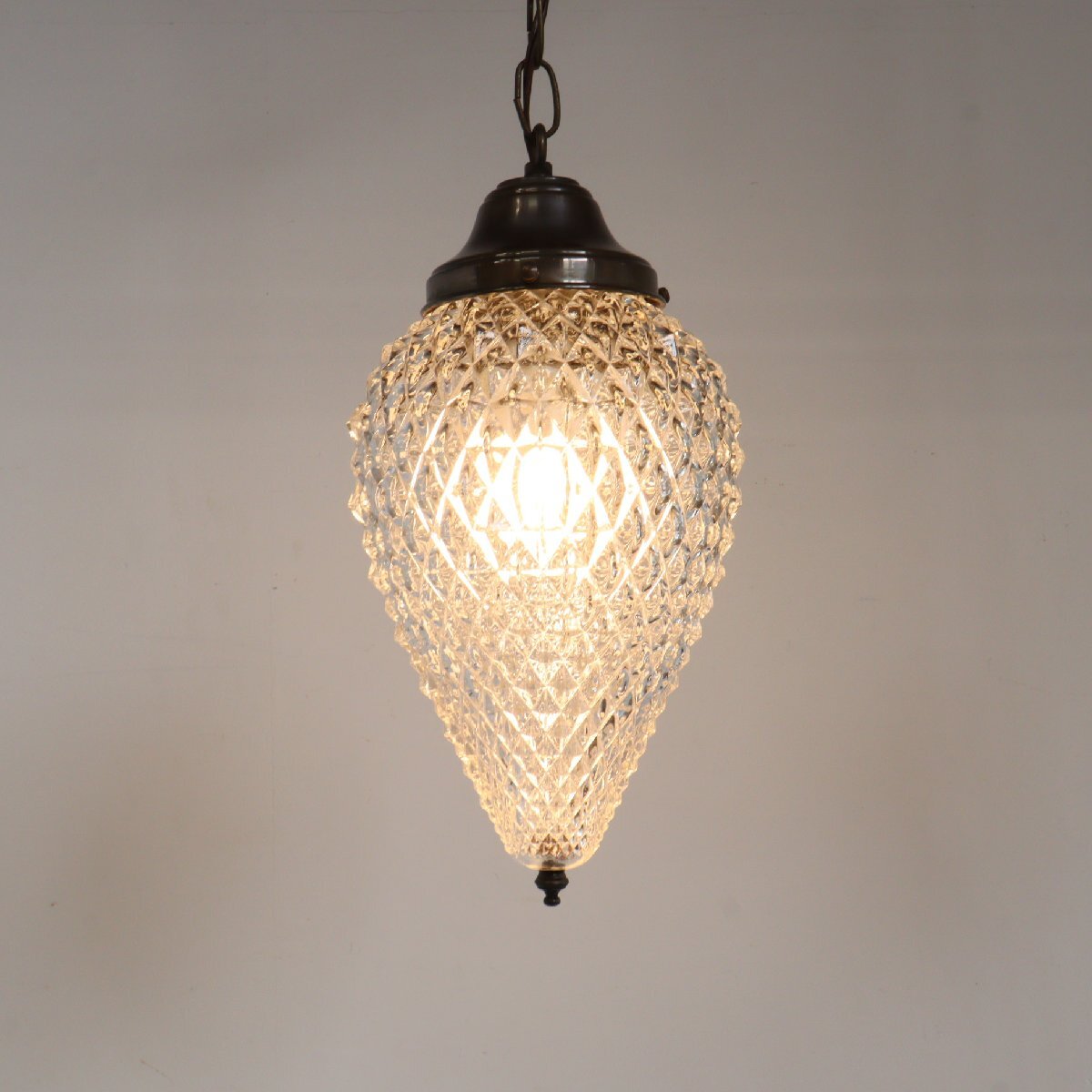 > ヴィンテージ カットガラス ペンダントランプ/アンティーク クリアガラス 吊り下げランプ カフェ 照明 シーリング#606-50-117-280