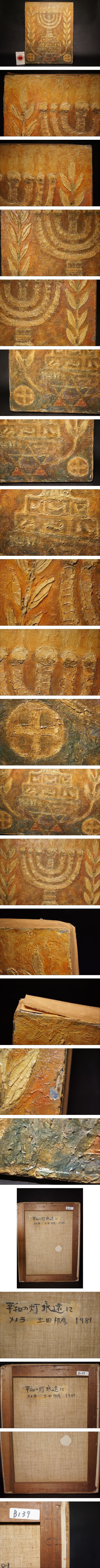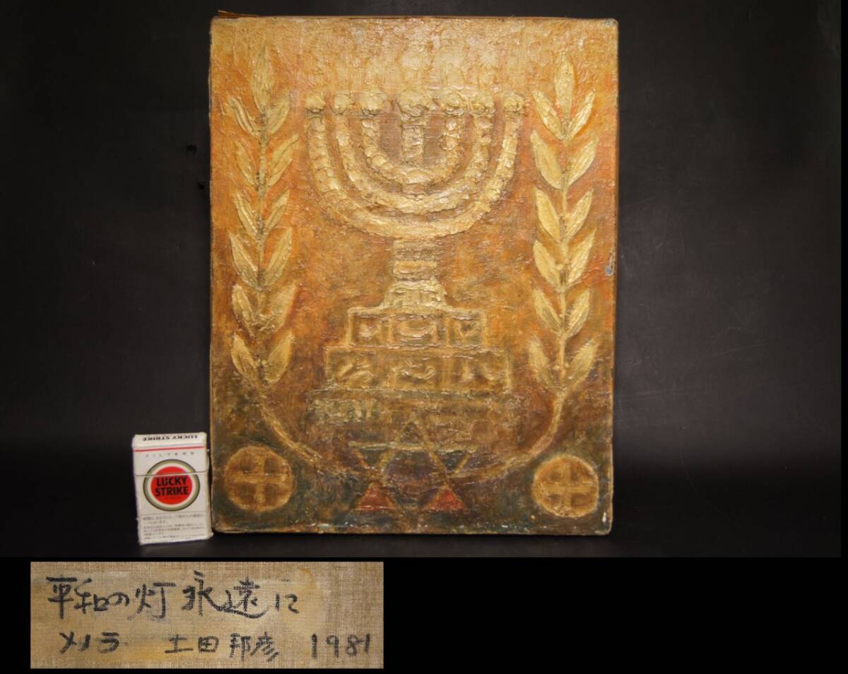 > 真贋保証 土田邦彦 油彩『平和の灯永遠に メノラ 1981年』 F6 燭台 メノーラー 新潟県長岡市生 絵画 油絵 検:やなせたかし 教会 祈り