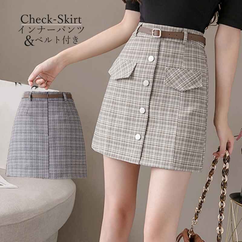 - タイトスカート チェック柄 ミニスカート ハイウエスト ファスナー着脱 S モカ