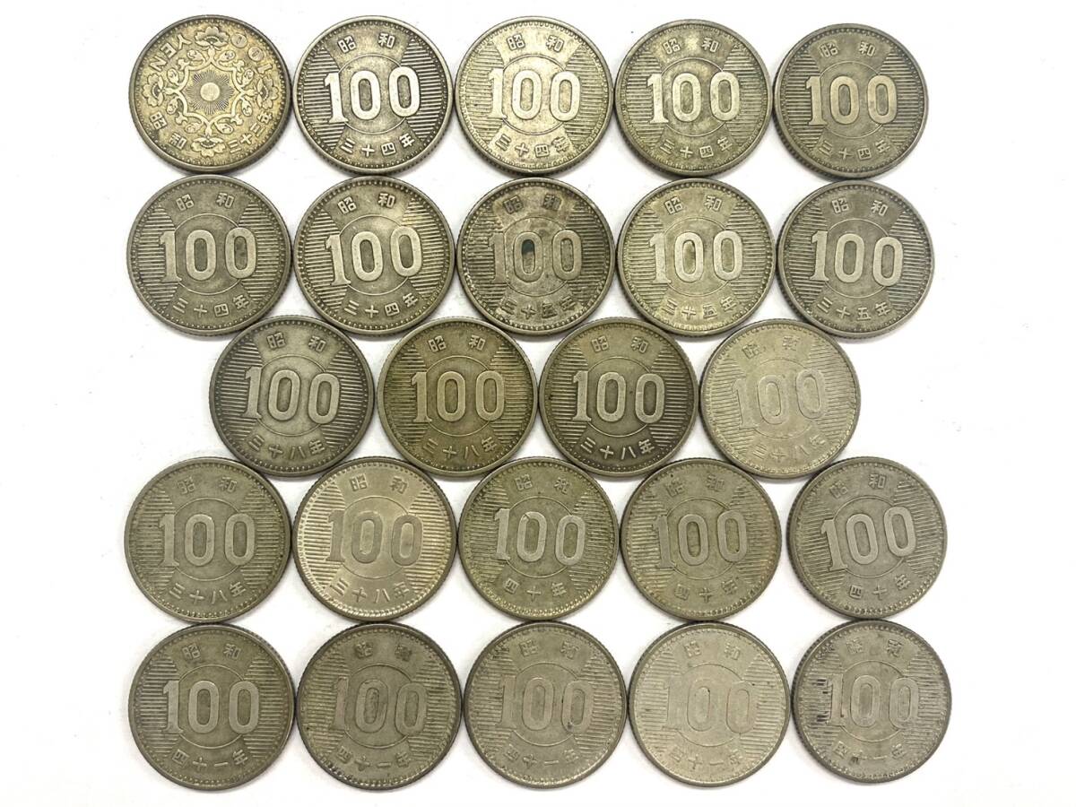 > 2908 W0710-97【1円スタート】 100円 銀貨 稲穂 23枚 鳳凰1枚 額面2400円 古銭 硬貨 昭和 百円 おまとめ 24枚セット