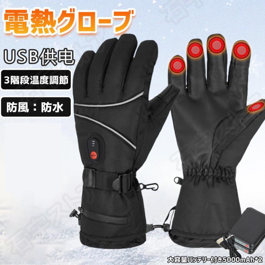 - 電熱グローブ バイク ヒーターグローブ 冬用 5000mAhバッテリー付き 裏起毛 3段階温度調整 防寒 ユニセックス 屋外作業 shw305