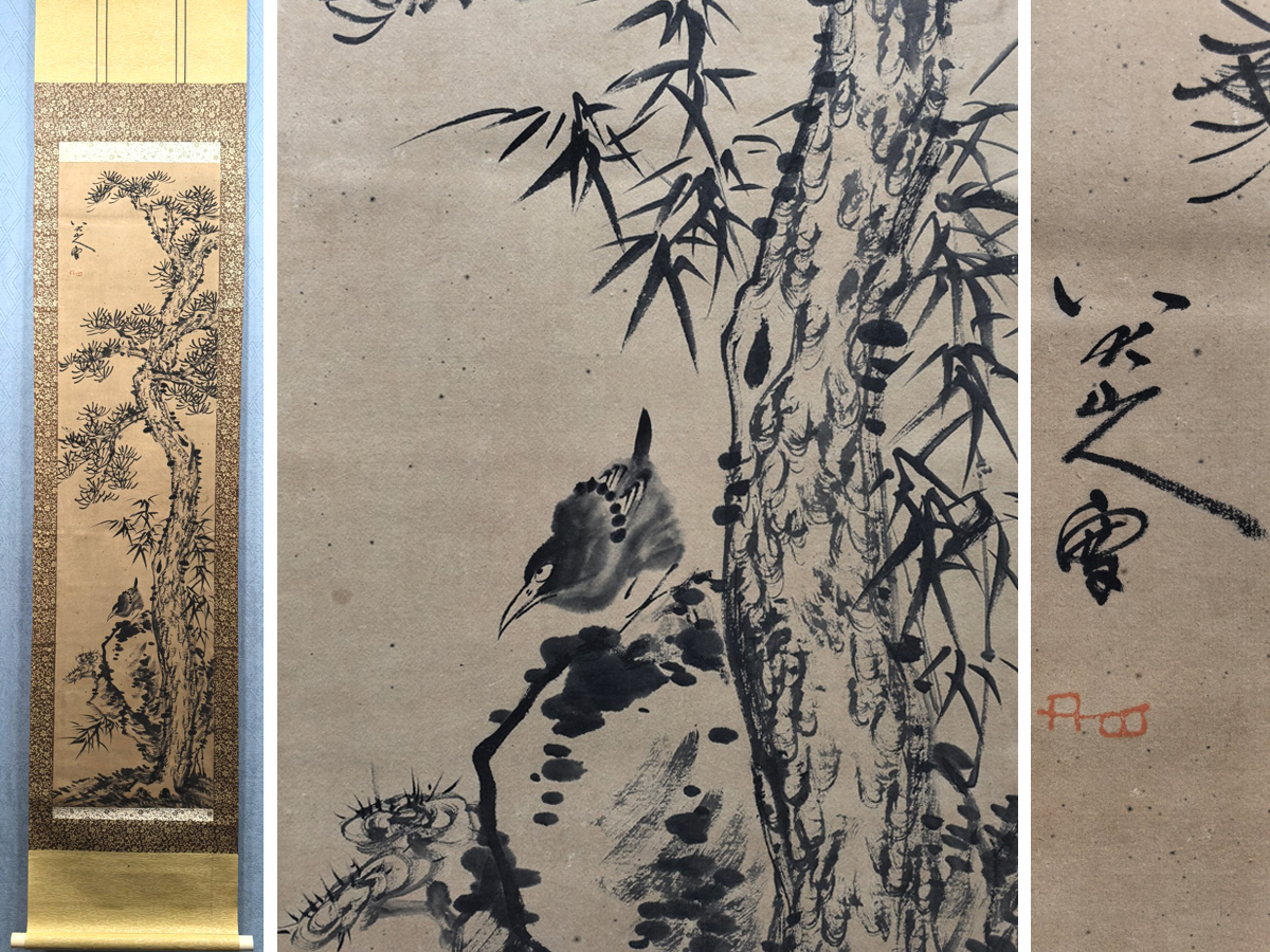 - ▽鴻▽古書道【清代書画家 八大山人書 紙本 花鳥図】 真筆肉筆 骨董書画 掛け軸 時代物 中国古美術 骨董品