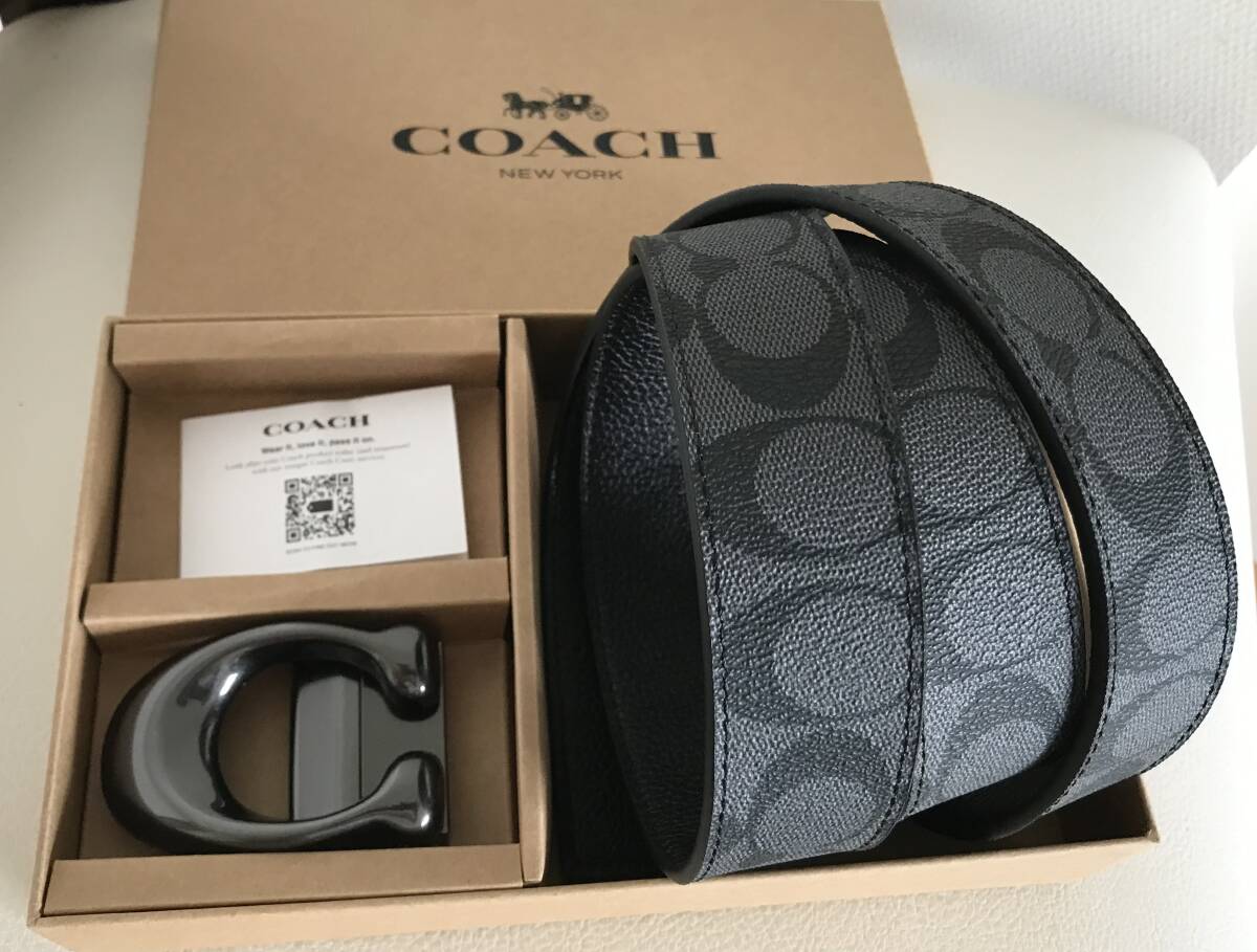 - 新品コーチ スカルプテッド C バックル カット トゥ サイズ リバーシブル ベルト
