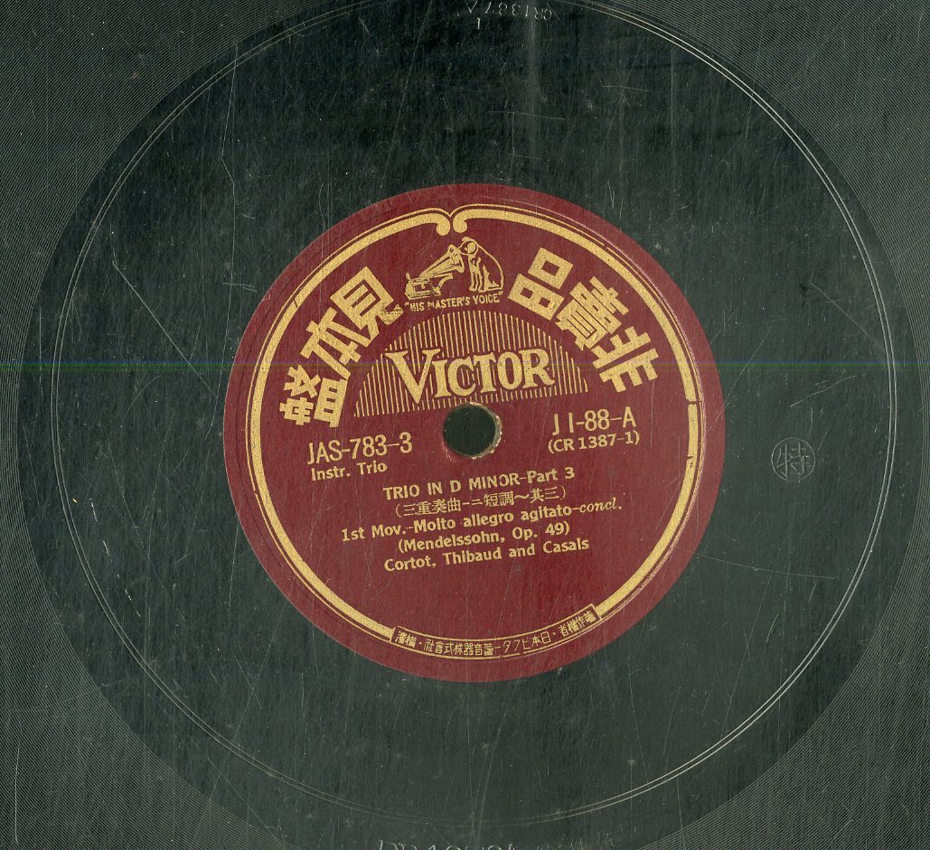 K00031784/12インチSP/アルフレッド・コルトー(Pf)/ジャック・ティボー(Vn)/パブロ・カザルス(Vc)「Mendelssohn / Trio In D Minor Part