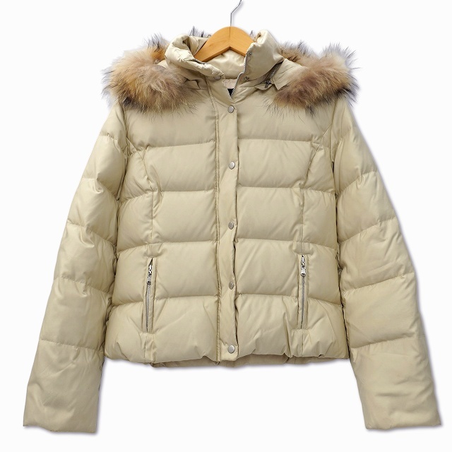 > ルスーク Le souk ラクーンファーフード フルジップ ダウン ジャケット 36 ベージュ レディース