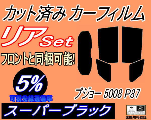 > カーフィルム スーパーブラック カット済み リアセット プジョー 5008 P87 (s) スモーク ガラスフィルム セット P875G01 P87AH01 プジョー