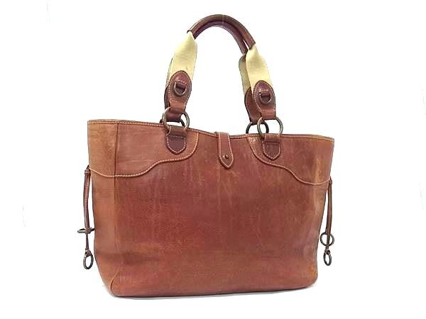 > 1円 RALPH LAUREN ラルフローレン レザー トートバッグ ハンドバッグ ショルダー 肩掛け メンズ ブラウン系 FP8024