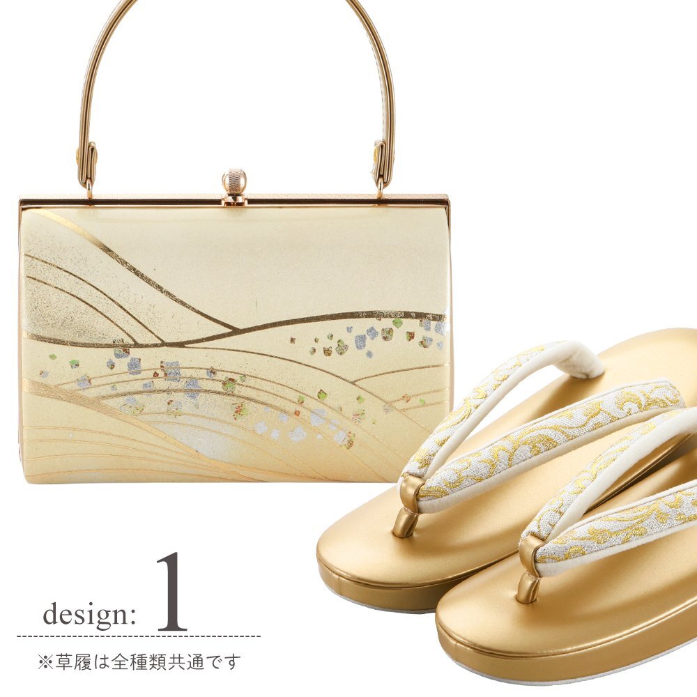 - ◆礼装用◆草履 バッグセット エナメル ソフト鼻緒 ゴールド 金 bs-375 (1) LLサイズ 【留袖 黒留 結婚式 卒業式 訪問着 フォーマル】