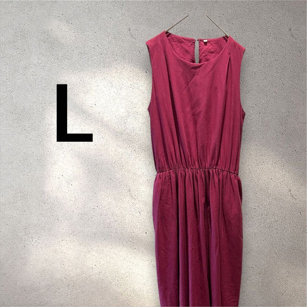 - タグなし ワンピース ピンク ノースリーブ ロング丈 ウエスト紐 L