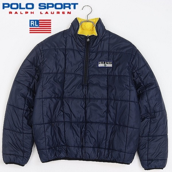 - 【HA887】90's◆POLO SPORT ポロ スポーツ ラルフローレン ロゴワッペン リバーシブル 中綿 ハーフジップ プルオーバー ジャケット L