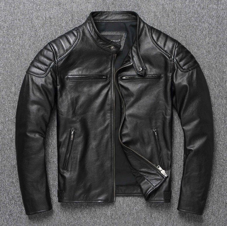 - 新型の重量感の頭の層の牛革の新品の皮のコートの男性の詰襟の機関車の服のジャケット