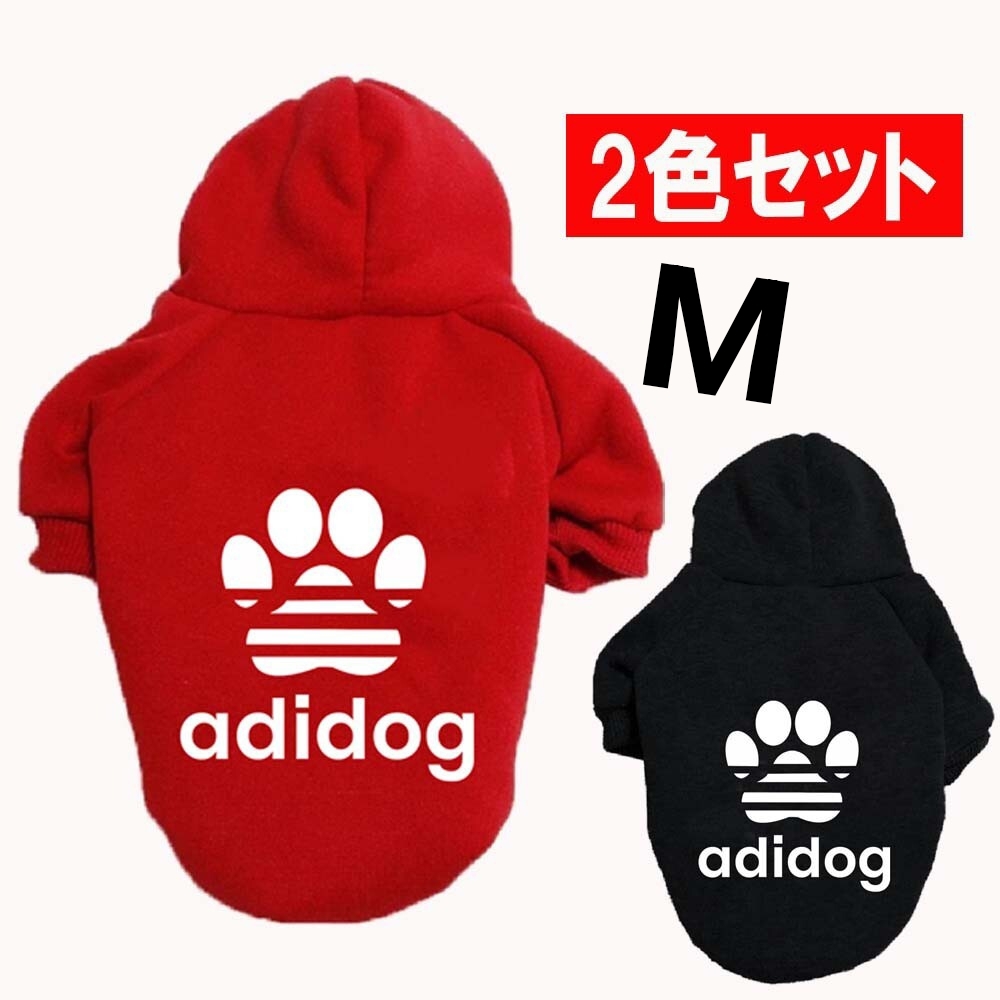 - Mサイズ ブラック、レッド 犬服 2色セット アディドッグ肉球パーカー 裏起毛パーカー裏起毛あったかい