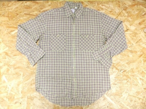 - CHECK MATE メンズ 綿 コットン100% アメカジ ダブル胸ポケット チェックシャツ 緑 茶 サイズL