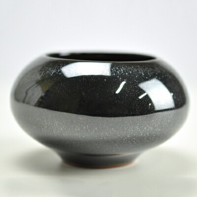 艶やかな黒い器肌の和鉢 天目3.5号 鉢幅約11cm×高さ約7cm