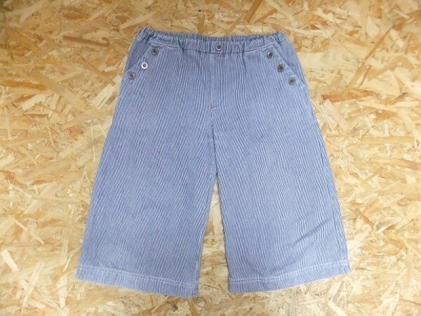 - ノーブランド レディース 綿ポリエステル混 アメカジ マリン ヒッコリーストライプ ワイド イージー ハーフパンツ 紺 M