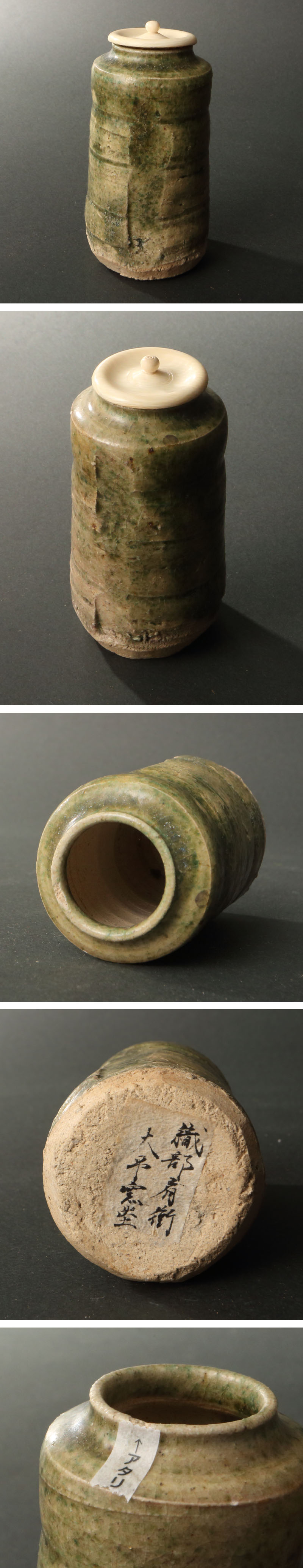 > 委託HK◇時代 織部肩衝茶入 大平窯出土(茶道具 陶磁器 陶芸 美濃焼 織部焼 青織部 茶器 茶入 抹茶 濃茶 棗 出土品 古物 骨董 古美術 )