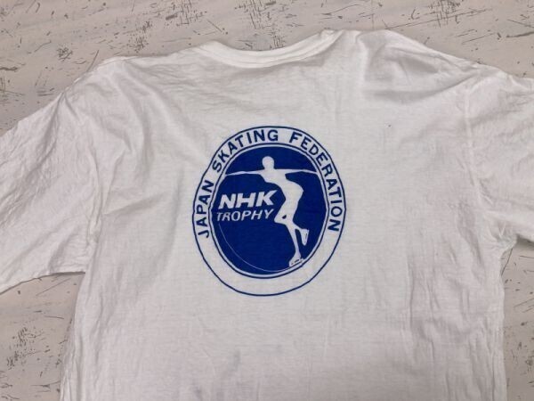 > NHK杯 国際 フィギュアスケート 競技大会 レトロ オールド 半袖Tシャツ カットソー メンズ バックプリント有 薄手 L 白