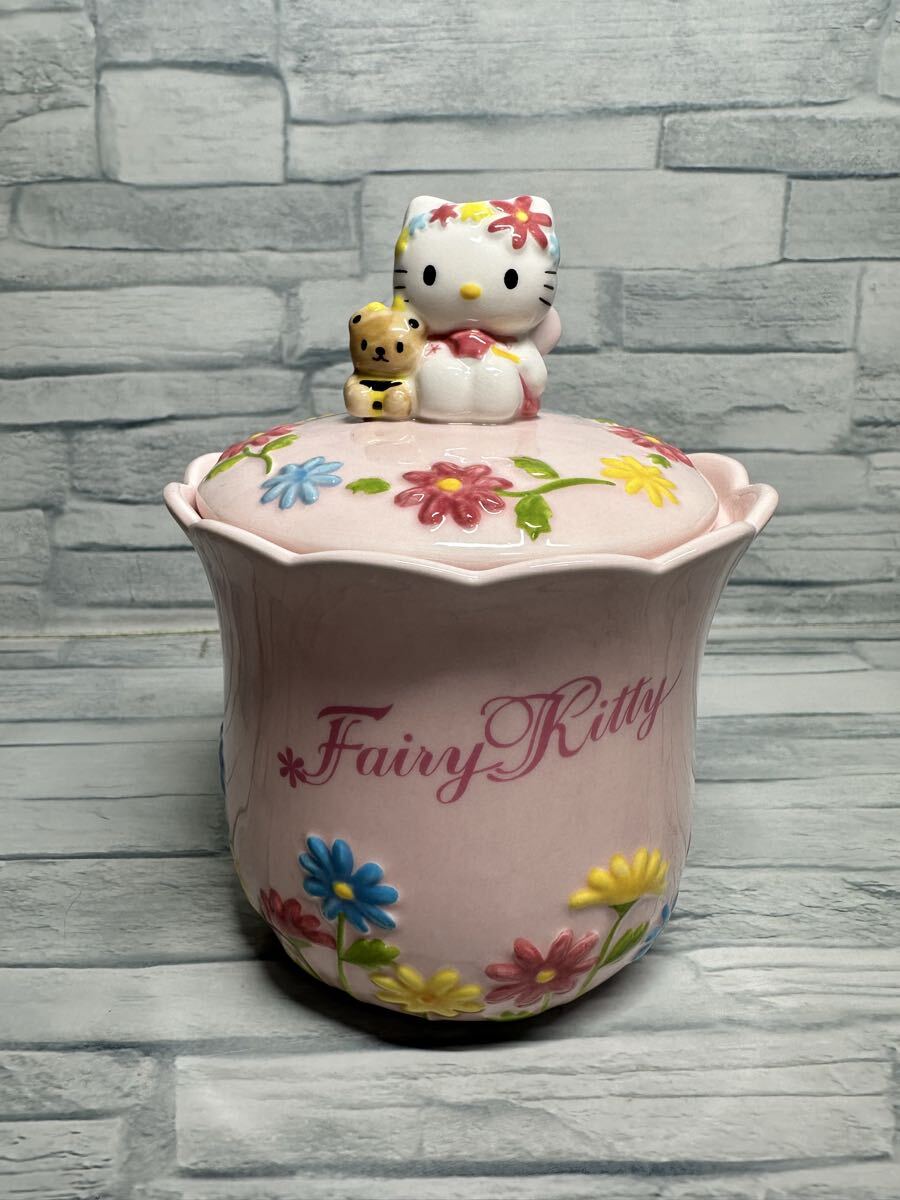 - ハローキティ 陶器製 フェアリーキティ 花 キャンディポット キッチンポット フラワーレリーフ 小物入れ ジオラマ 置物 2000年 サンリオ