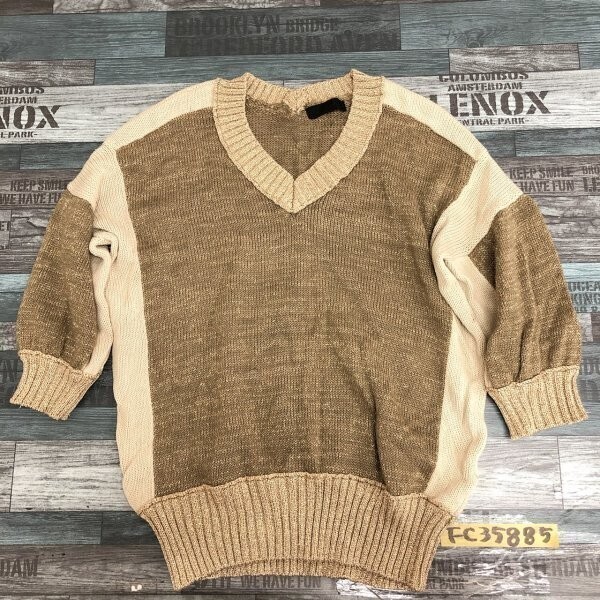 > JEANASIS ジーナシス レディース コットン・ウール Vネック 七分袖 ラメ糸 ニットセーター F ブラウンベージュ