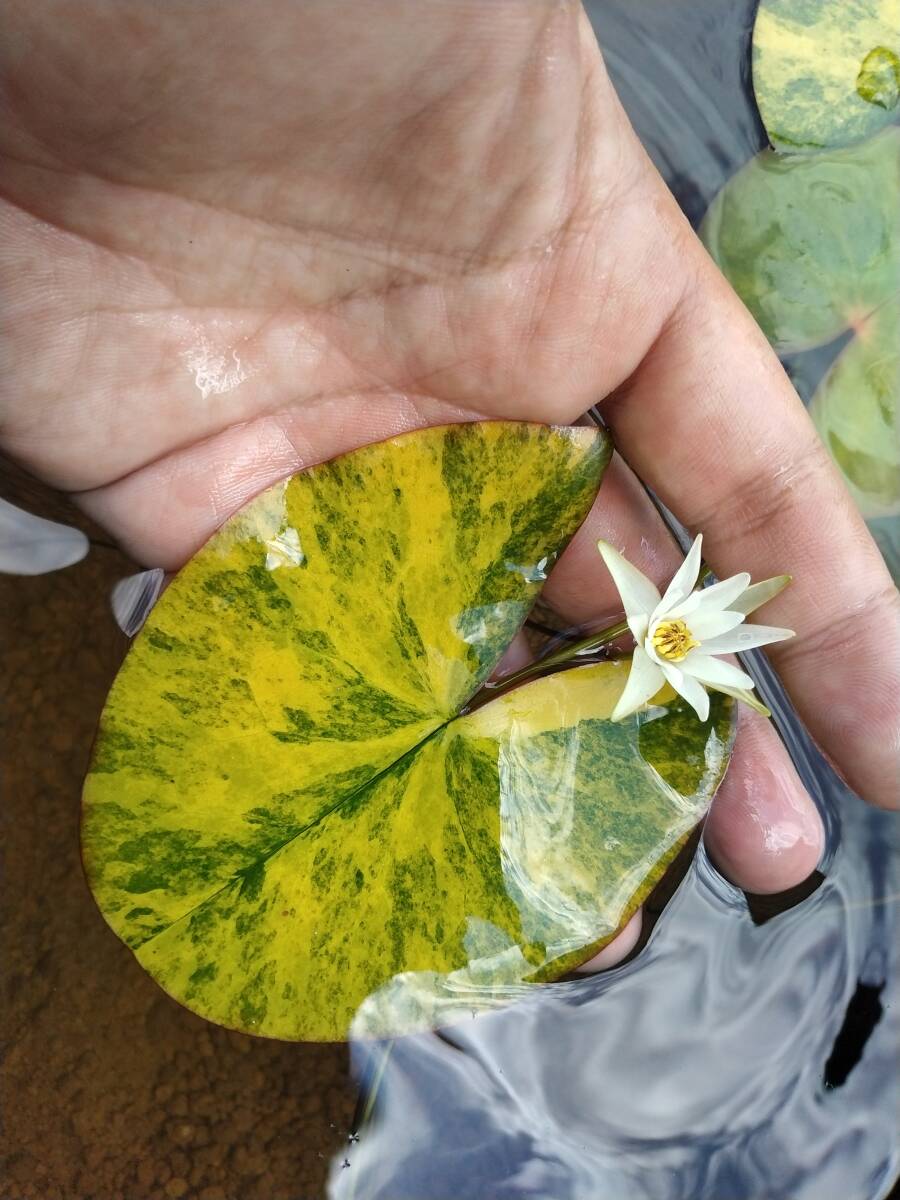 - 【開田屋水園】 斑入りの未草 (スイレン) 苗 斑入り ヒツジグサ