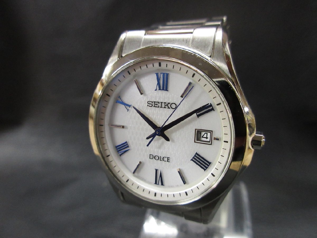 > 【N1-0102】稼働品 セイコー SEIKO ドルチェ DOLCE SADM009 V147-0BF0 ソーラー ホワイト系文字盤 シルバー系 現状品 同梱可【千円市場】