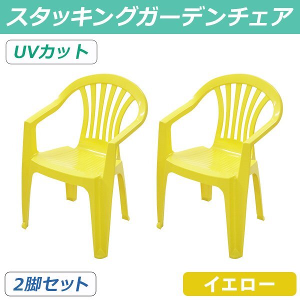 - 送料無料 ガーデンチェアー 2脚セット UVカット イエロー ポリプロピレン製 PP 軽量で持ち運び簡単 ガーデンファニチャー セット ガーデン