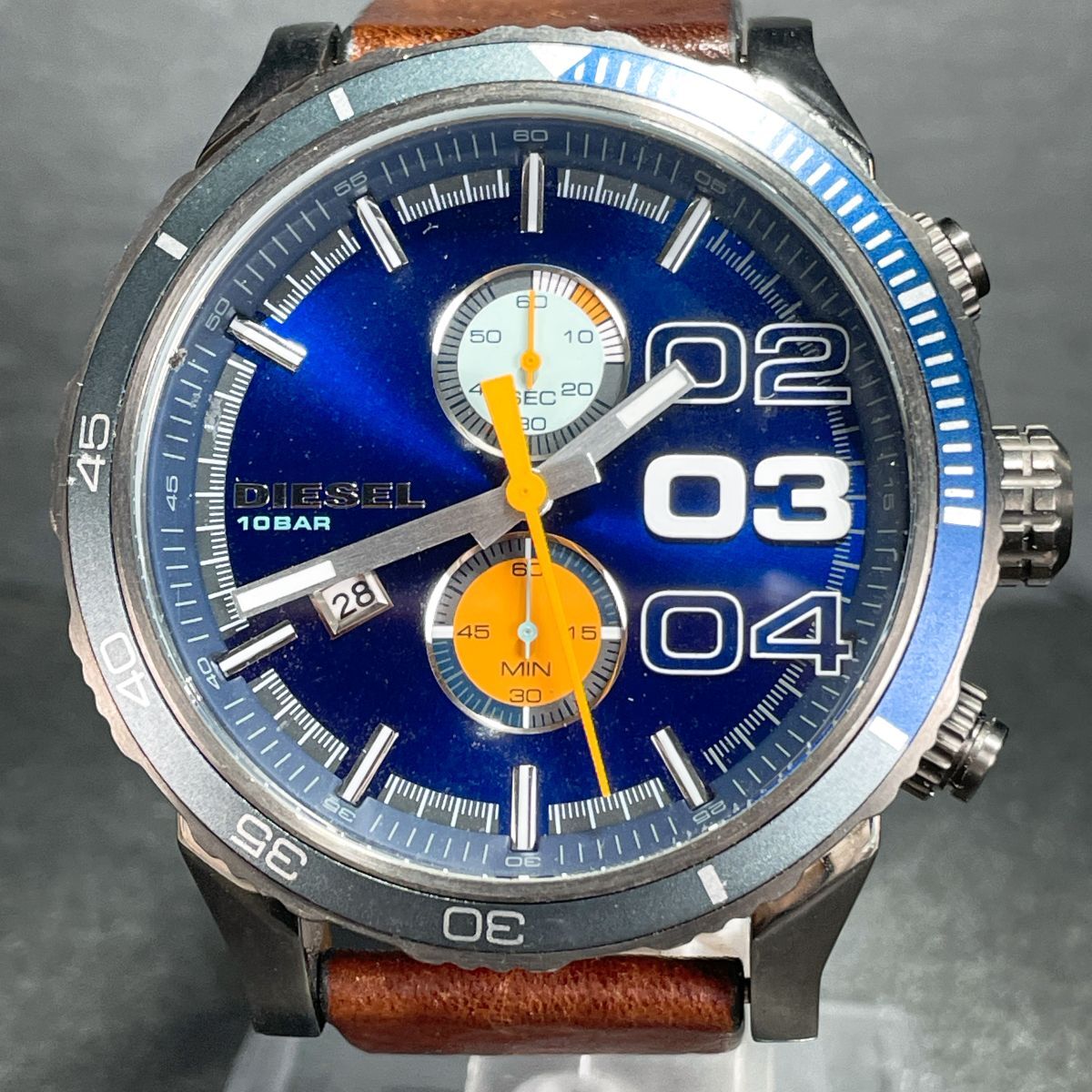 - DIESEL ディーゼル DZ4350 腕時計 アナログ クオーツ レザーバンド ブラウン ブルー文字盤 ラウンド ステンレススチール 新品電池交換済み