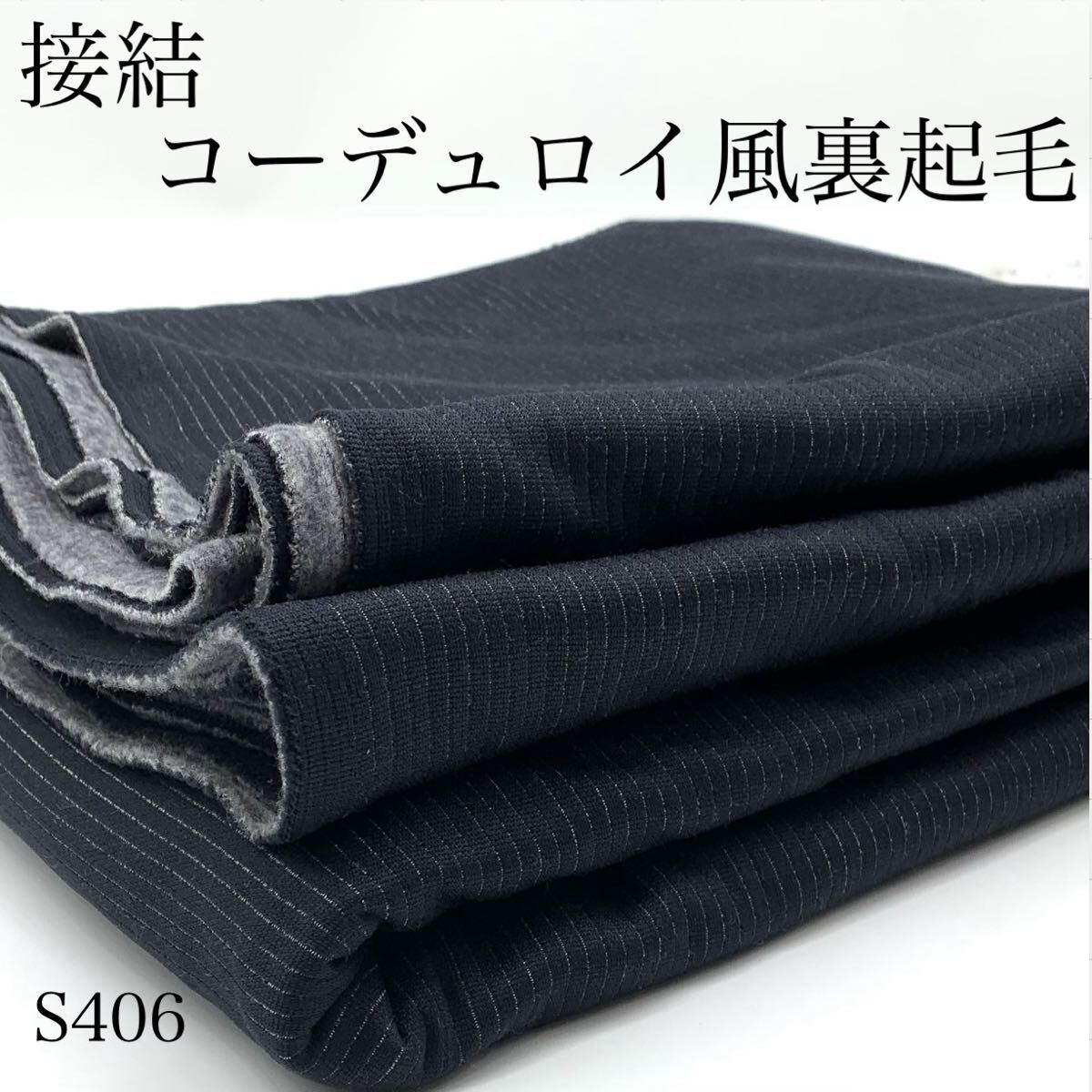 > S406 接結 コーデュロイ風 裏起毛 綿ポリ T/C ブラック×グレー 生地 日本製 秋冬物 ハンドメイド はぎれ 布