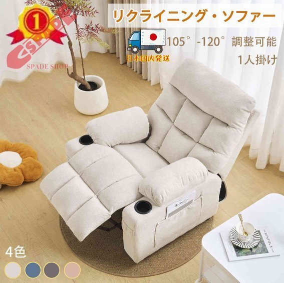 - 【国内発送】リクライニングソファー ソファー 1人掛け コンパクト ゲーミングチェア 105°-120°調整可能コンパクト リクライニングチェア