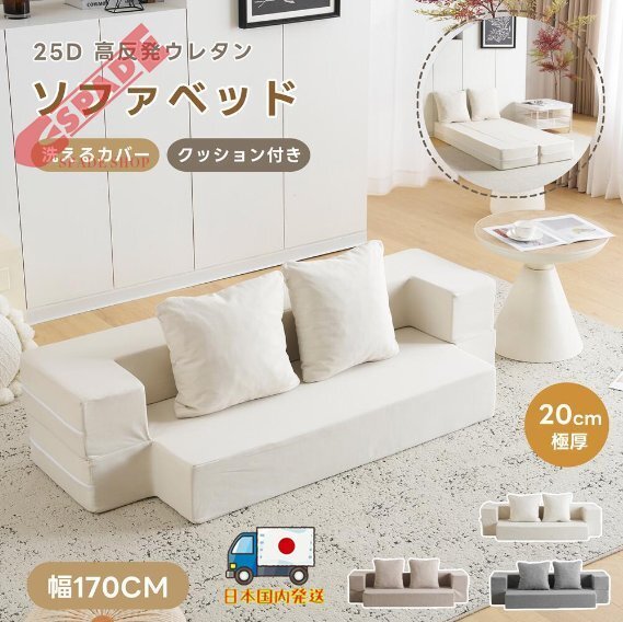 - 【国内発送】2人掛けソファベッド 組立て不要 フロアソファ コンパクト ローソファ こたつ用 ソファーマルチに使える クッション付き座椅子