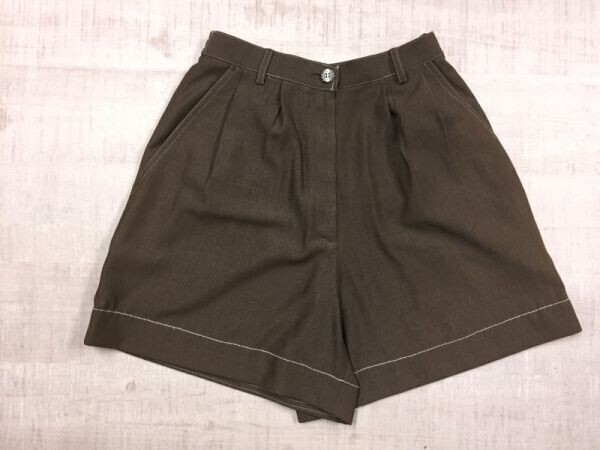 - パリス PARIS レトロ トラッド クラシック ゴルフ ハイウエスト 刺繍 ハーフ ショートパンツ レディース 日本製 M 茶色