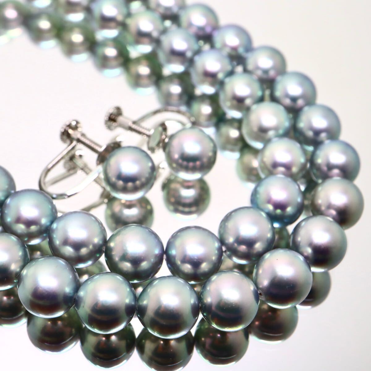 - 【TASAKI(田崎真珠)】K14WG入り!約7.0-7.5mm珠/テリ良好!!■アコヤ本真珠ネックレス&イヤリング■N約37.1g pearl パール necklace ED5/U633
