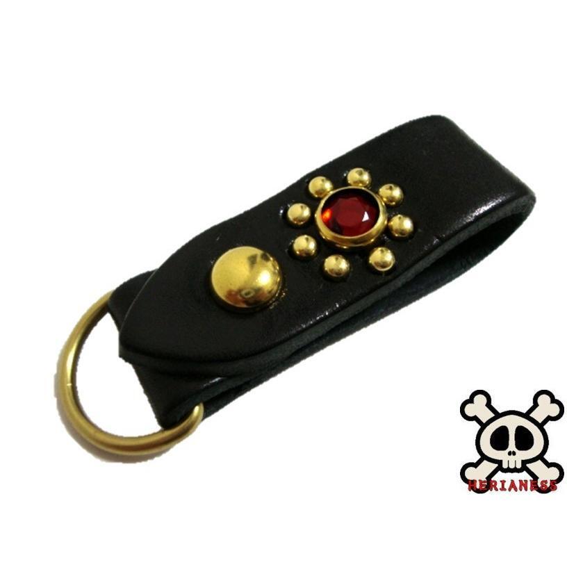 - 栃木レザー(牛革)真鍮スタッズループホルダー 黒(レッドスポッツ)一枚革 ハンドメイド