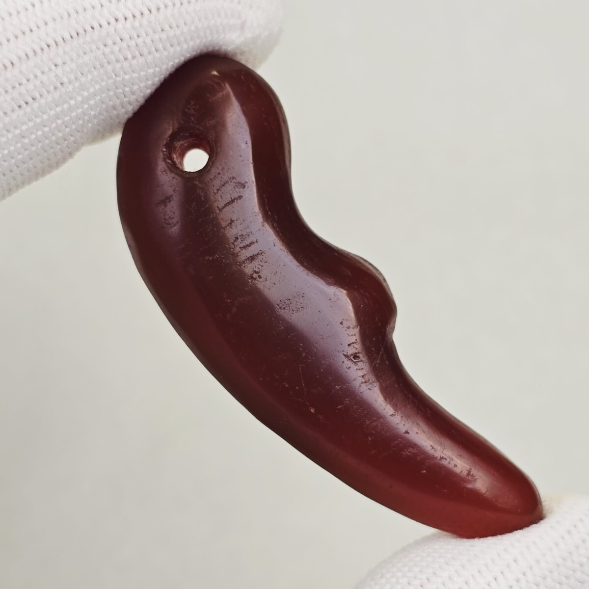 - 收集品 縄文、弥生、古墳、須恵器、透明感質感良い 火赤瑪瑙 勾玉 美品