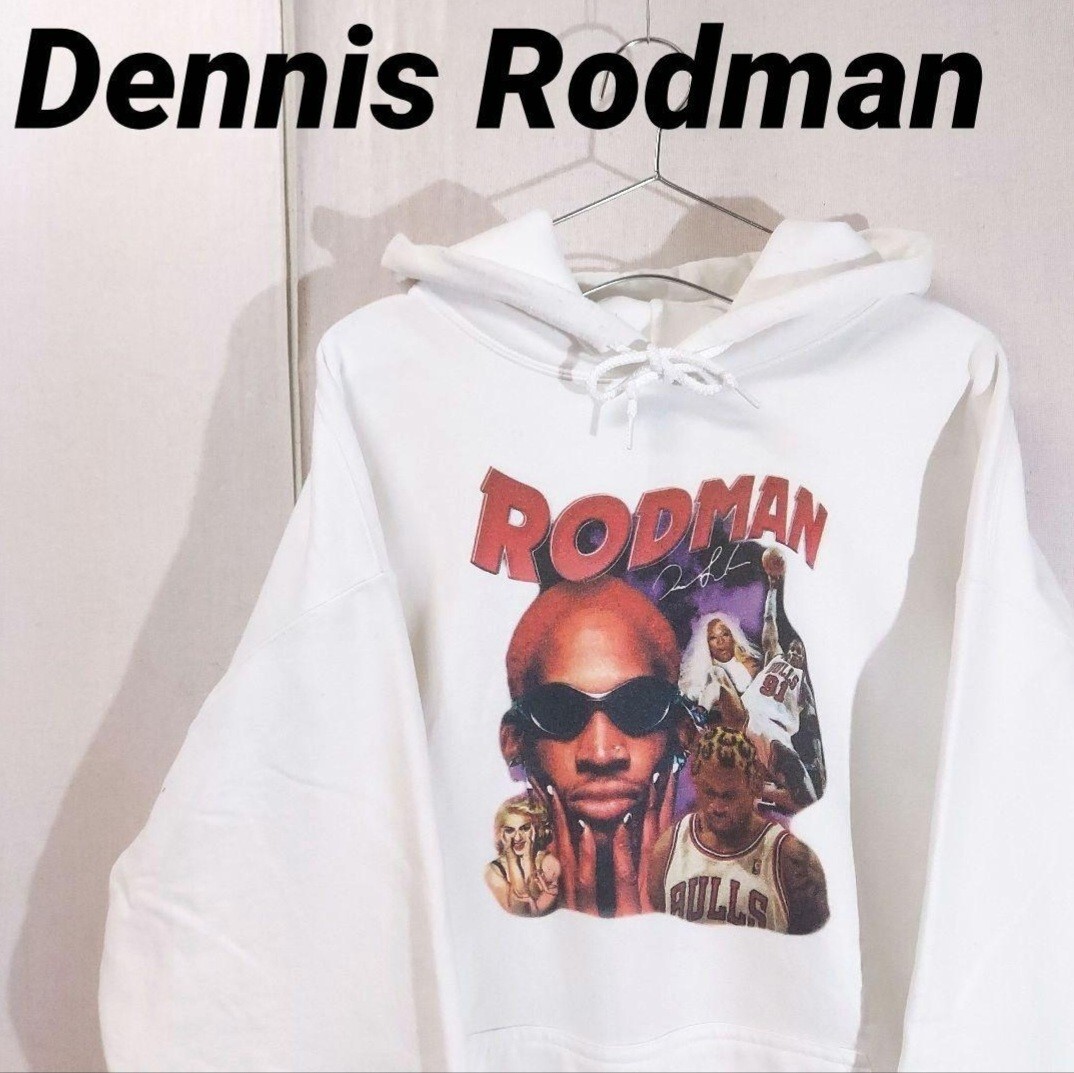 - 古着 デニス・ロッドマン プリント スウェットパーカー プルオーバー ギルダンボディ ホワイト